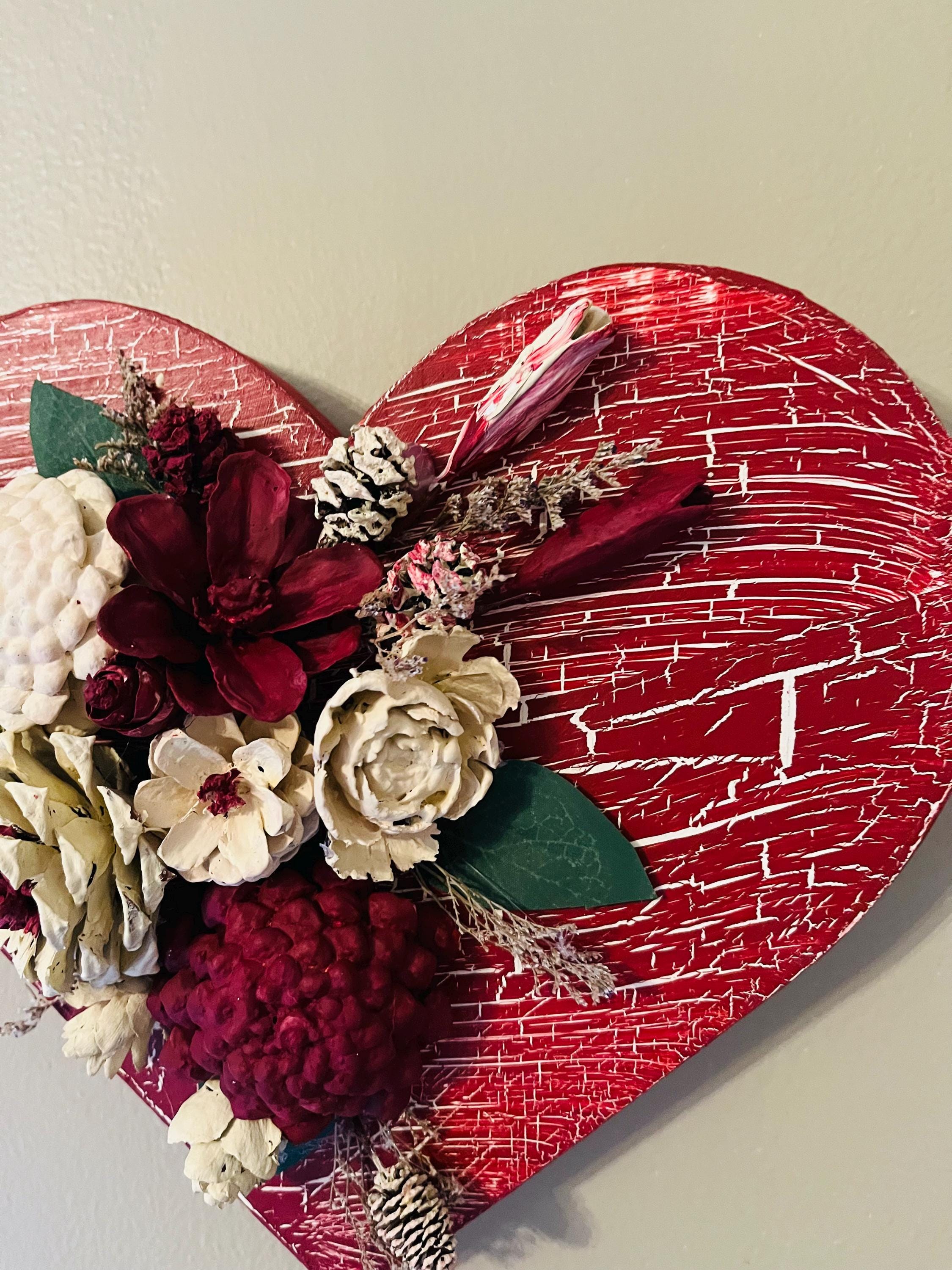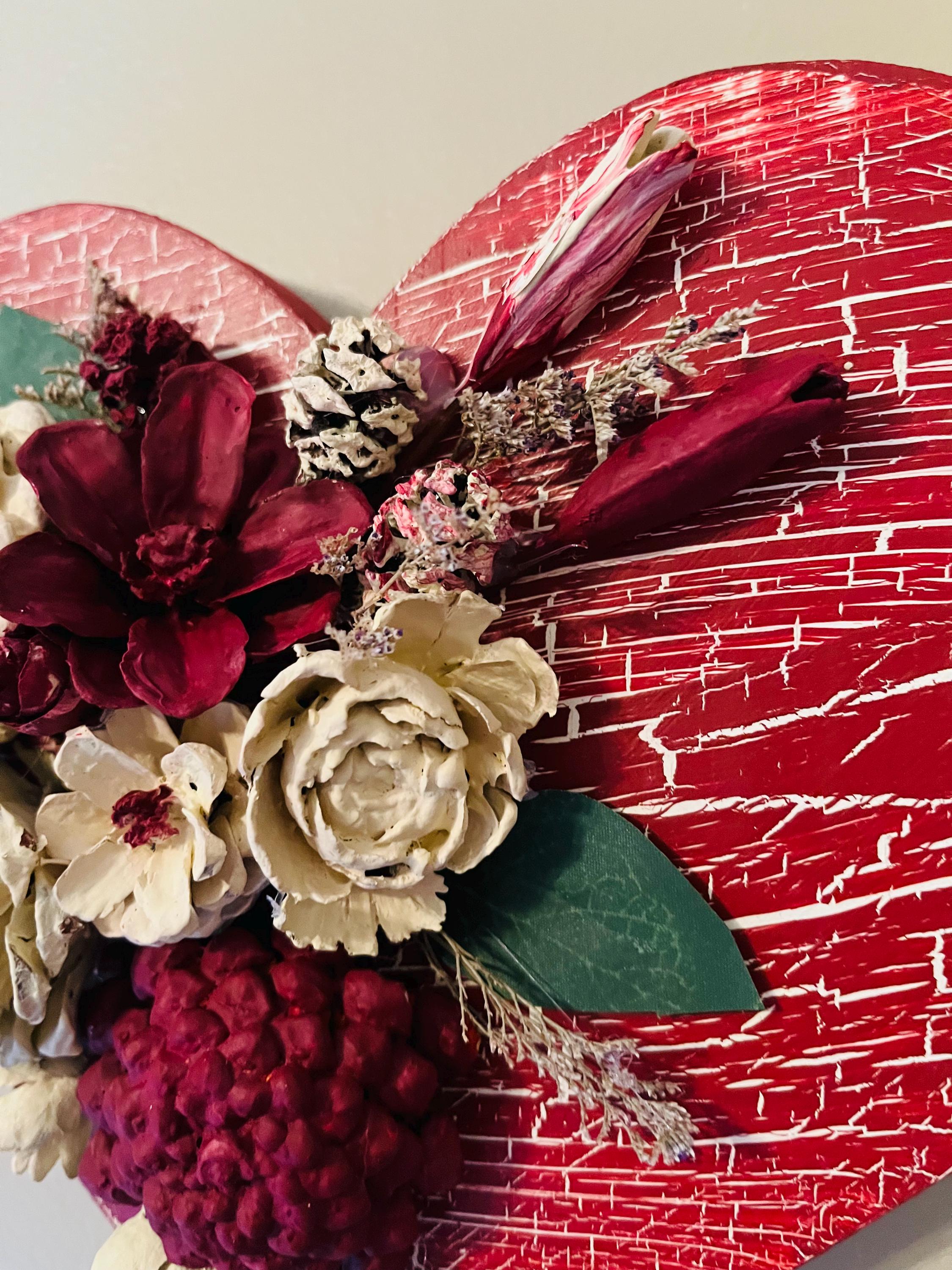 Handmade Crackle Heart with Pinecone Florals – Romantic Valentine Decor